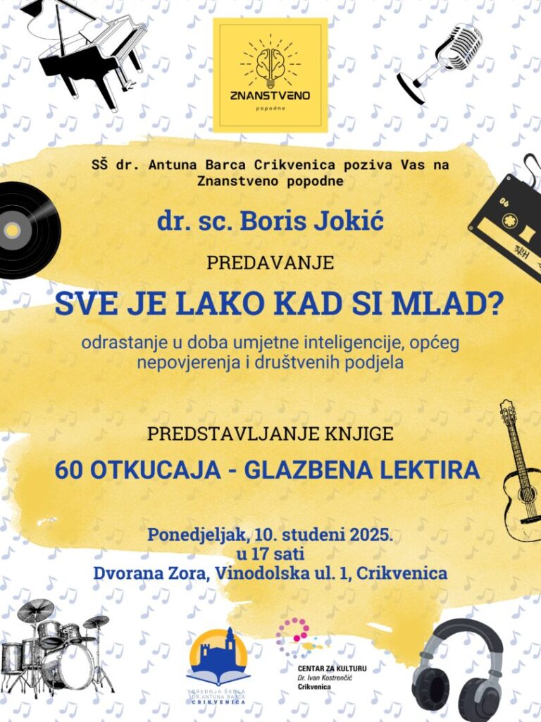 Pozivamo sve ljubitelje znanosti, glazbe i promišljanja o suvremenom društvu da nam se pridruže na ovom inspirativnom susretu!