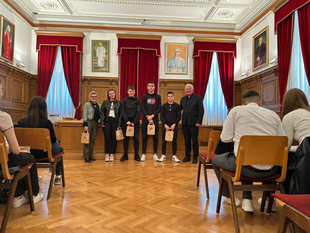 Danas su učenici 3.bf razreda (Mia Kolar, Anamarija Jokić, Toni Lekaj, Marko Žutić), u pratnji svoje mentorice Andreje Jakubin, bili na prijemu kod riječkog nadbiskupa Mate Uzinića. Nadbiskup je učenike pozvao zbog njihovog osvojenog prvog mjesta na županijskom natjecanju iz vjeronauka.